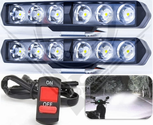 6 LED Bar Foglight Single Row High Bright Original, DC Power Waterproof Off-Roading Fog Head Bar Light For All Bike, Scooty with Free On/Off Switch (White) - Pack of 2