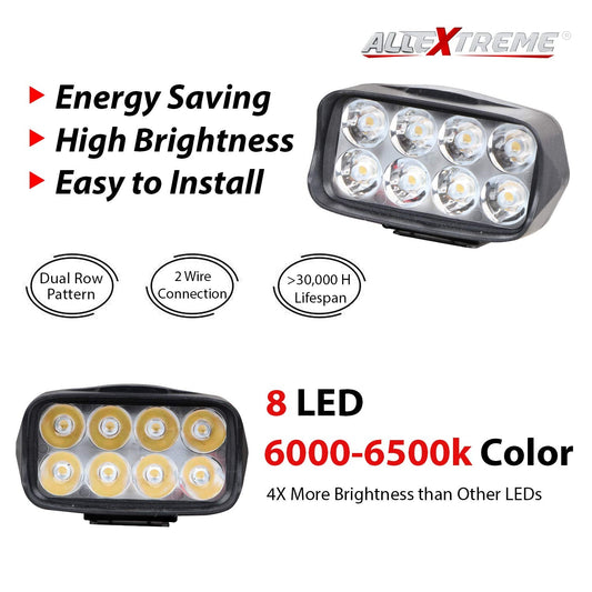 8 LED Universal LED Fog Light Driving Work Lamp for Bike Cars and Motorcycle (8 Led, 2Pcs With Switch)